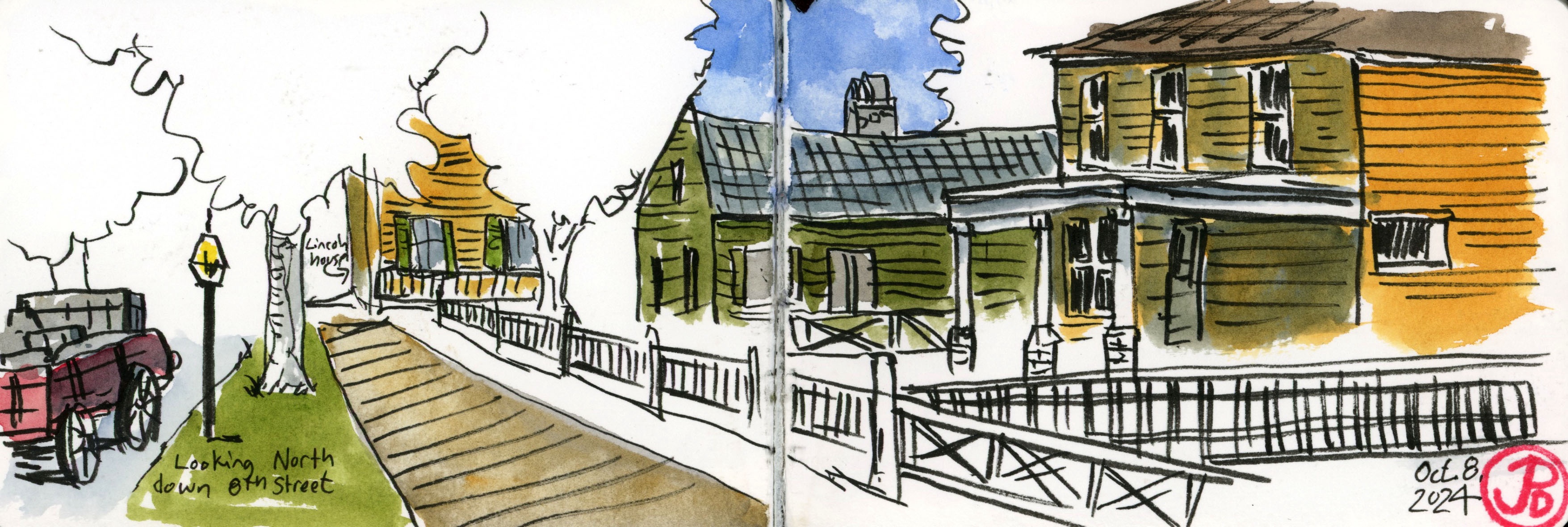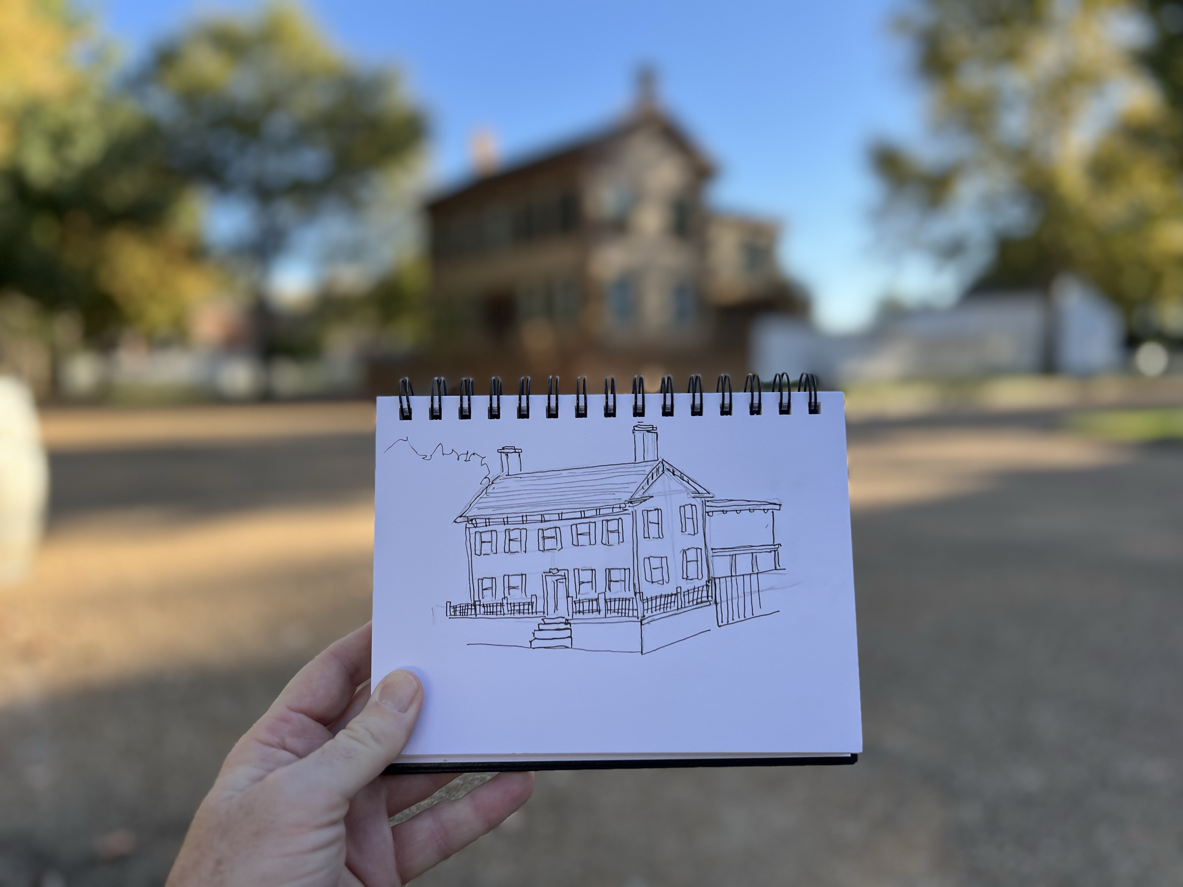 I sat on the curb, across the intersection from the house, opened my sketchbook, and started to draw. Before me was the only house that Abraham Lincoln ever owned.