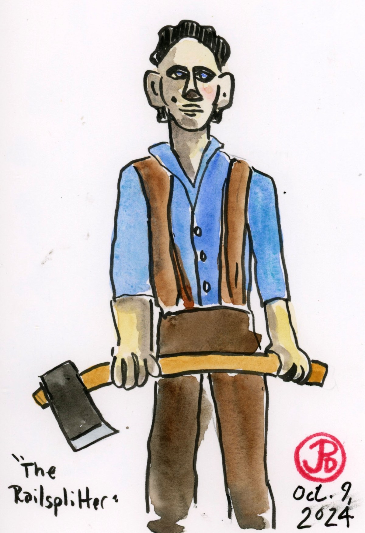 Perhaps one of the oddest representations of Lincoln is to be found at the State Fairgrounds. This is the whimsical “The Railsplitter” statue (featured sketch).