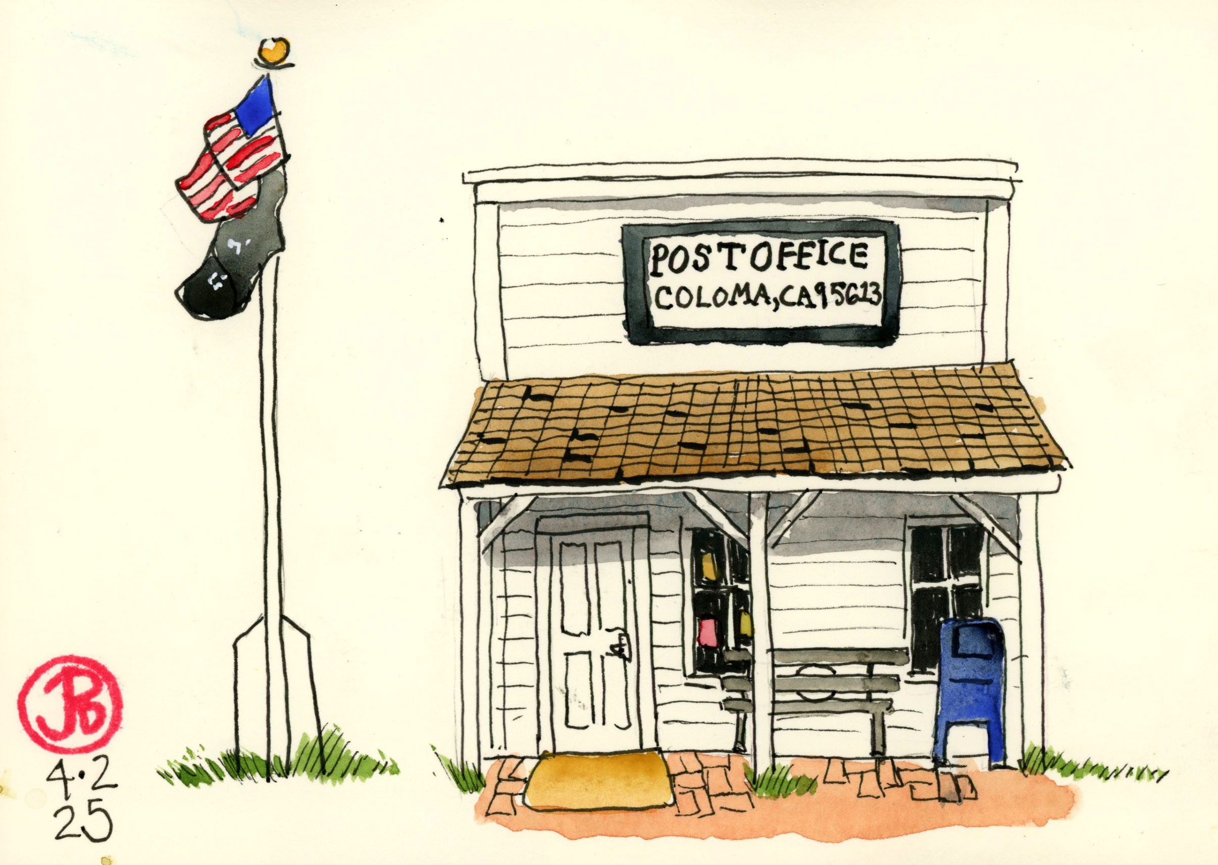 I then walked over to Highway 49, Coloma’s Main Street and I sketched the quaint Post Office.