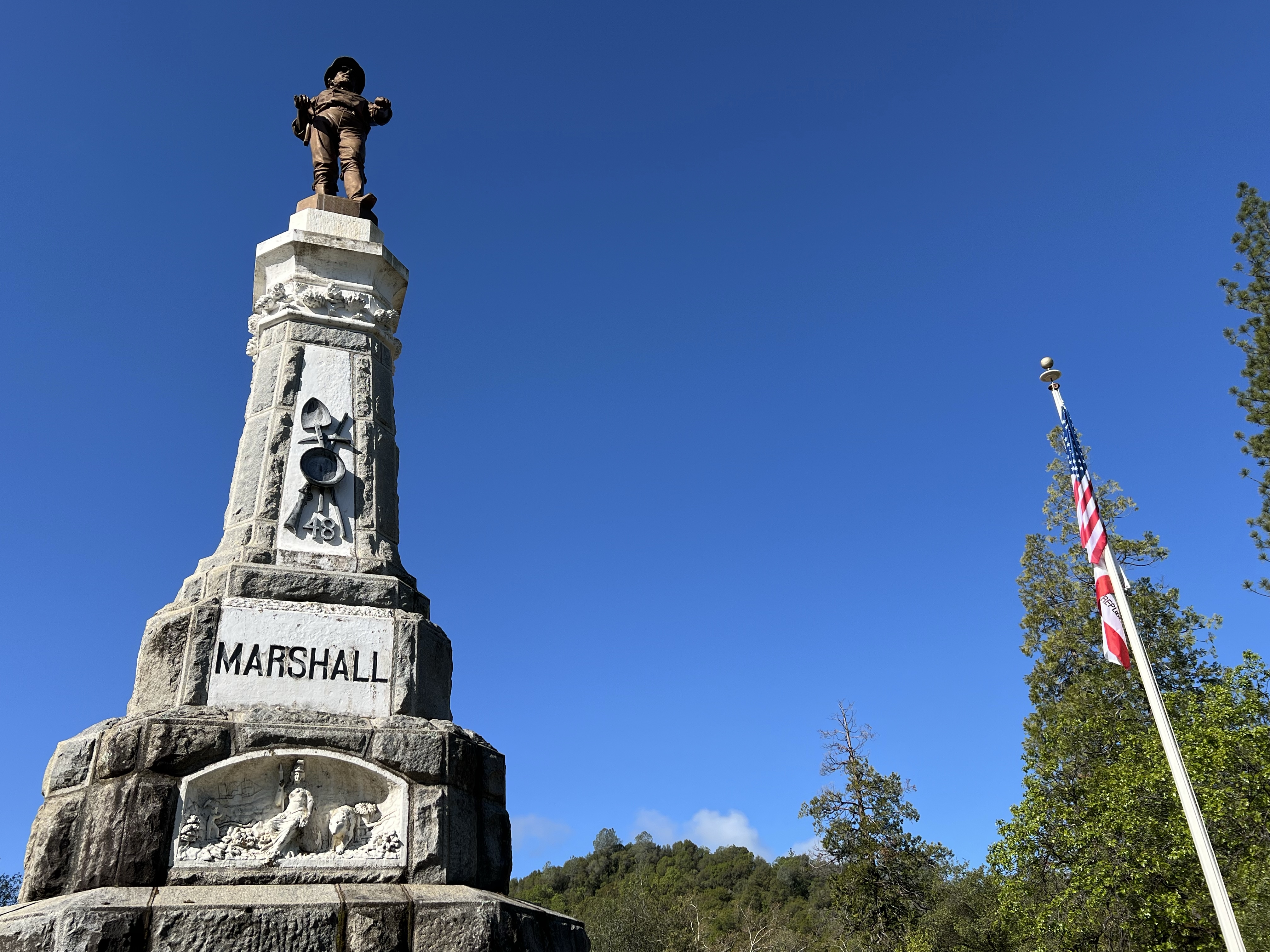 I parked in front of the visitor’s center and hiked up the road, past the ruins of the jail, past the cabin where James Marshall lived to the hill where Marshall still rests.