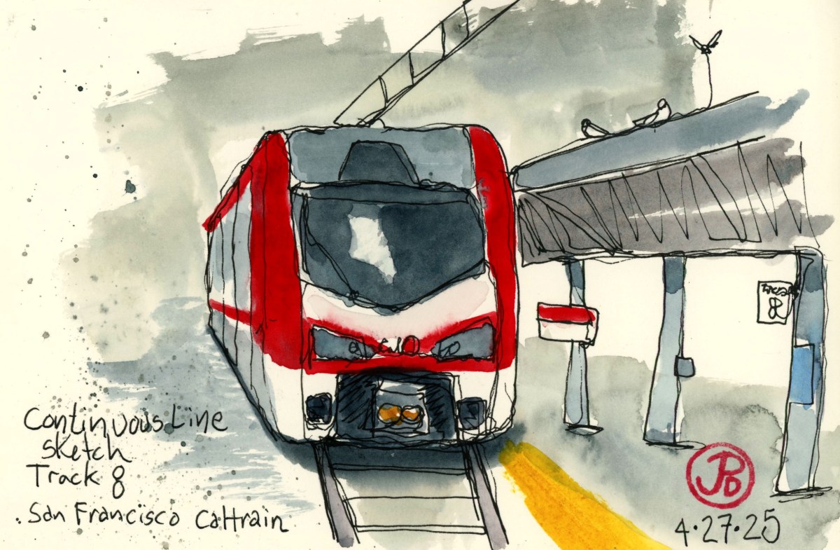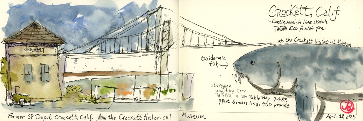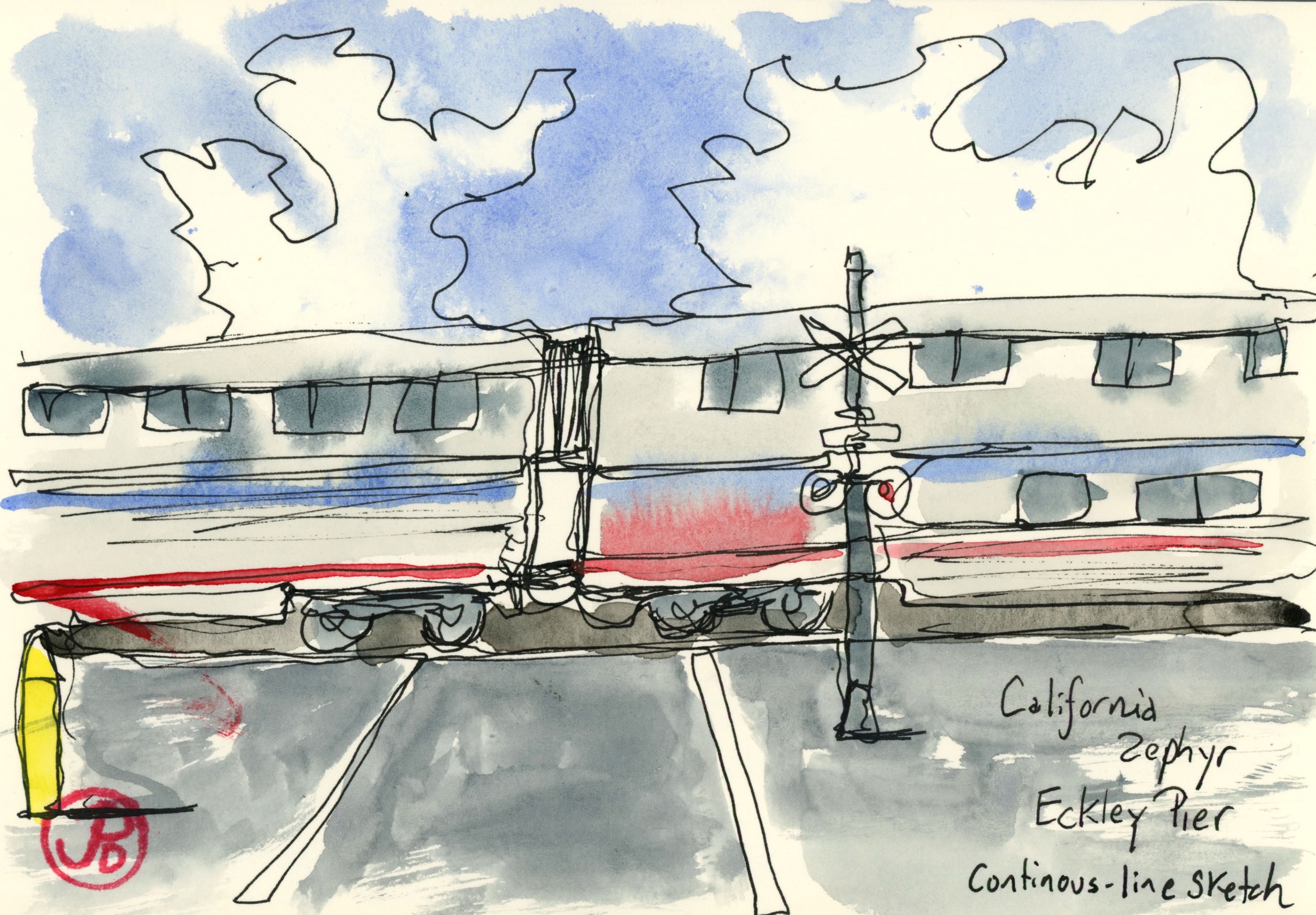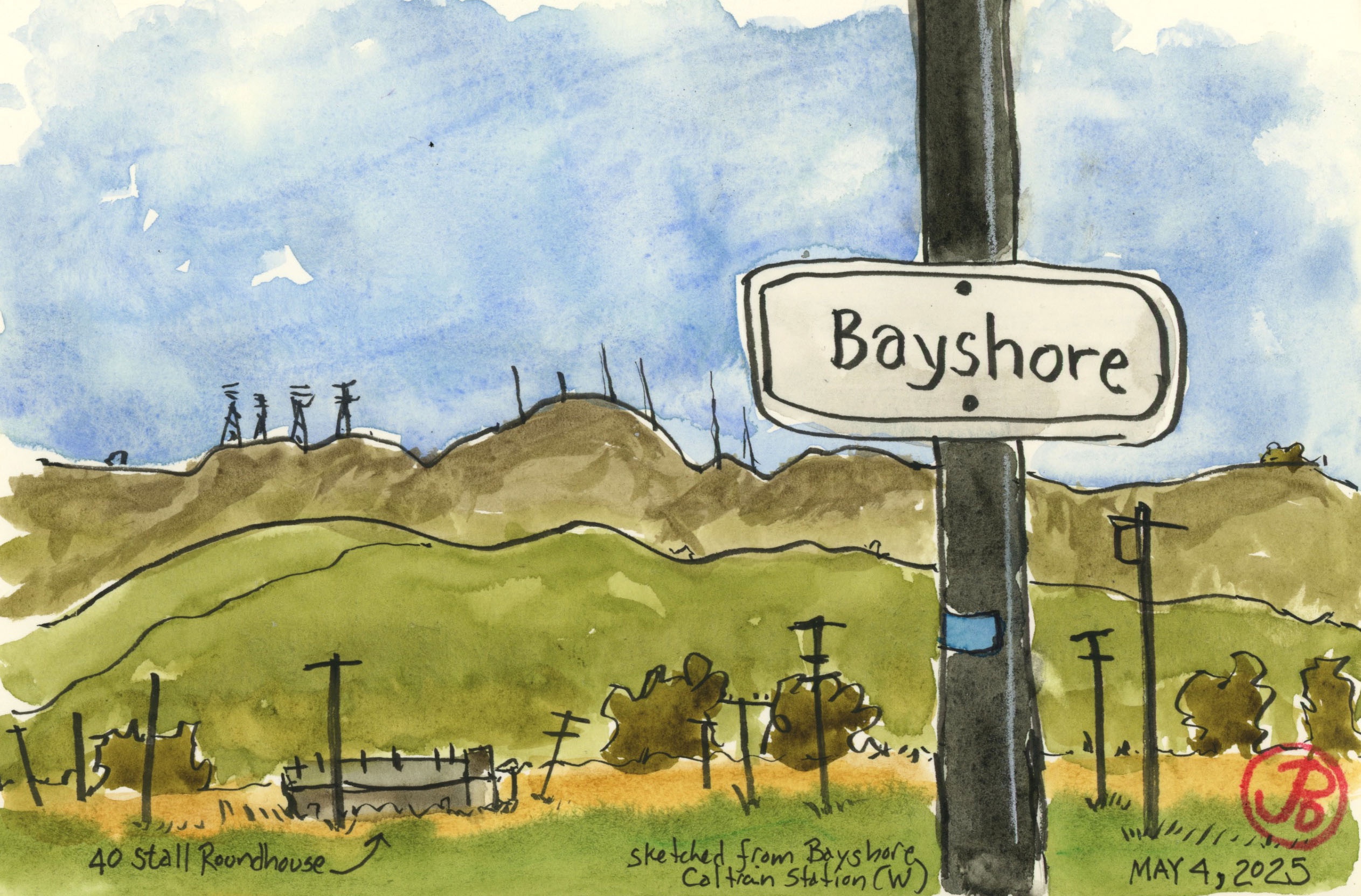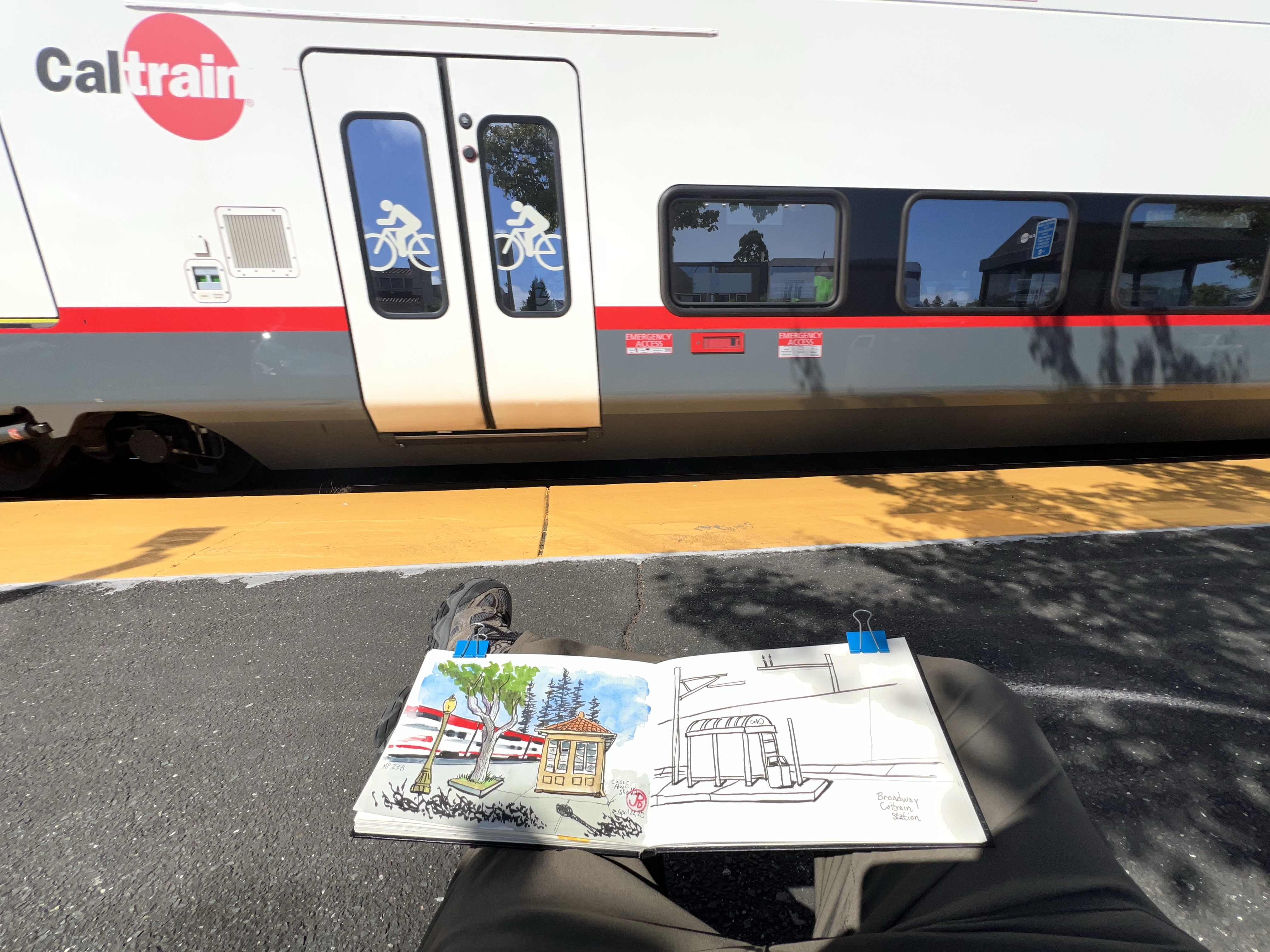 On Sunday I took the N Judah to Embarcadero Station with the intention of sketching a little San Francisco rail history. My main sketching target was the Belt Line Railroad Engine House or Roundhouse at Embarcadero and Sansome.