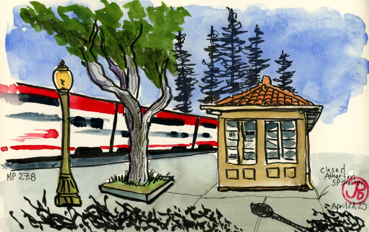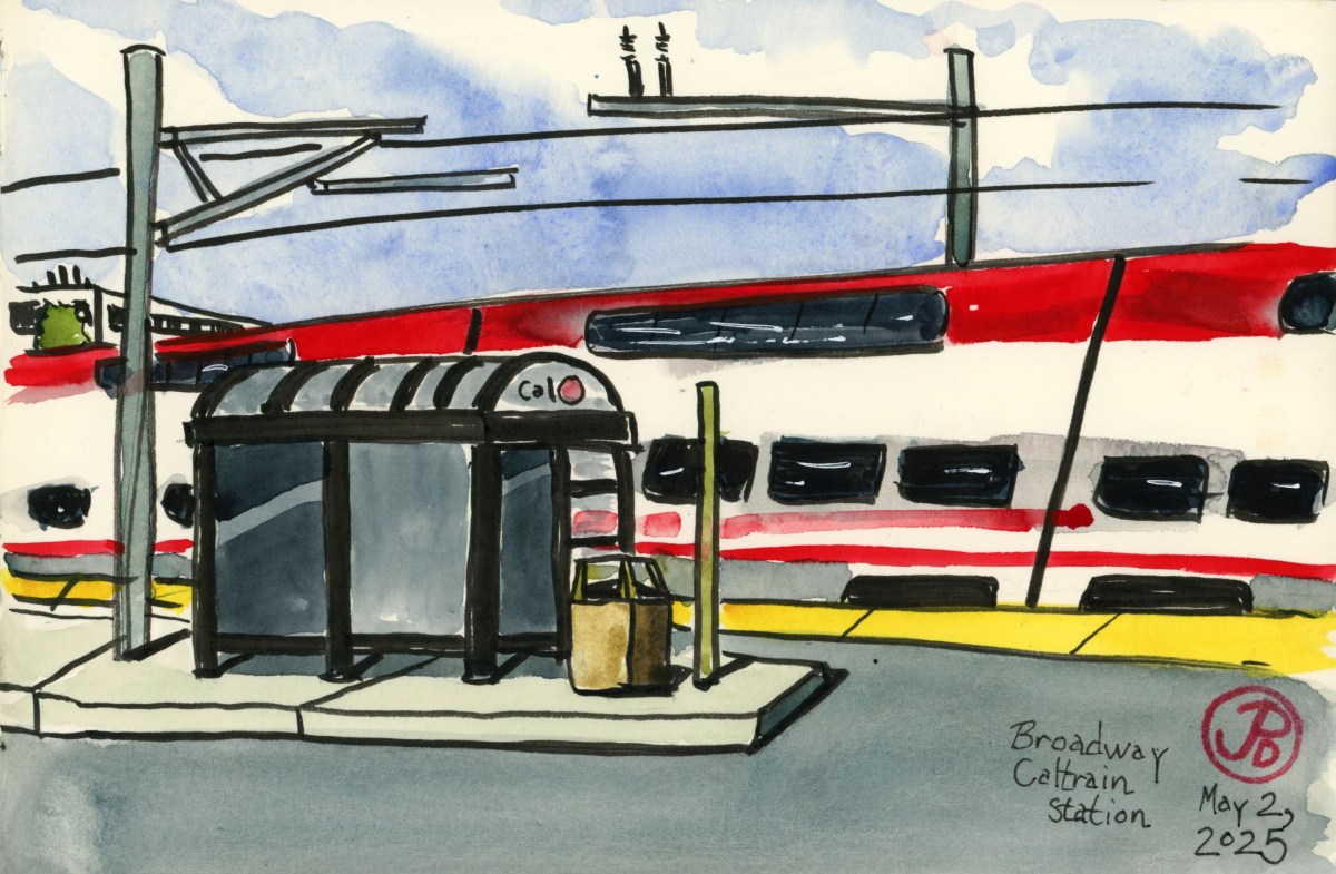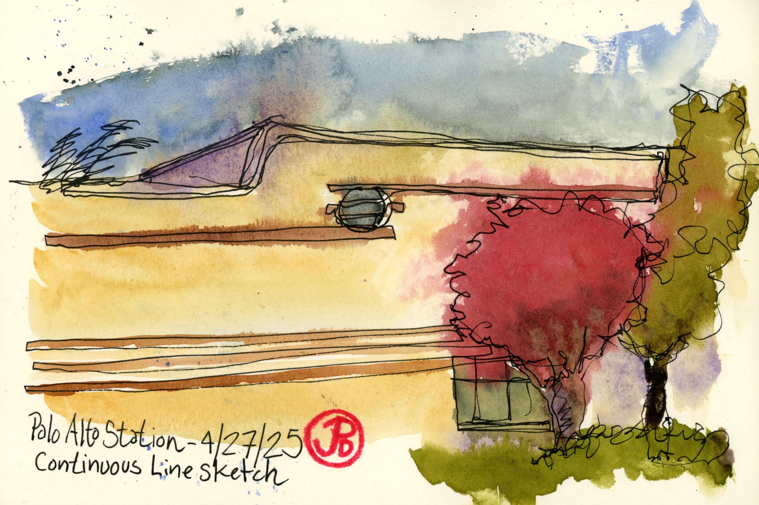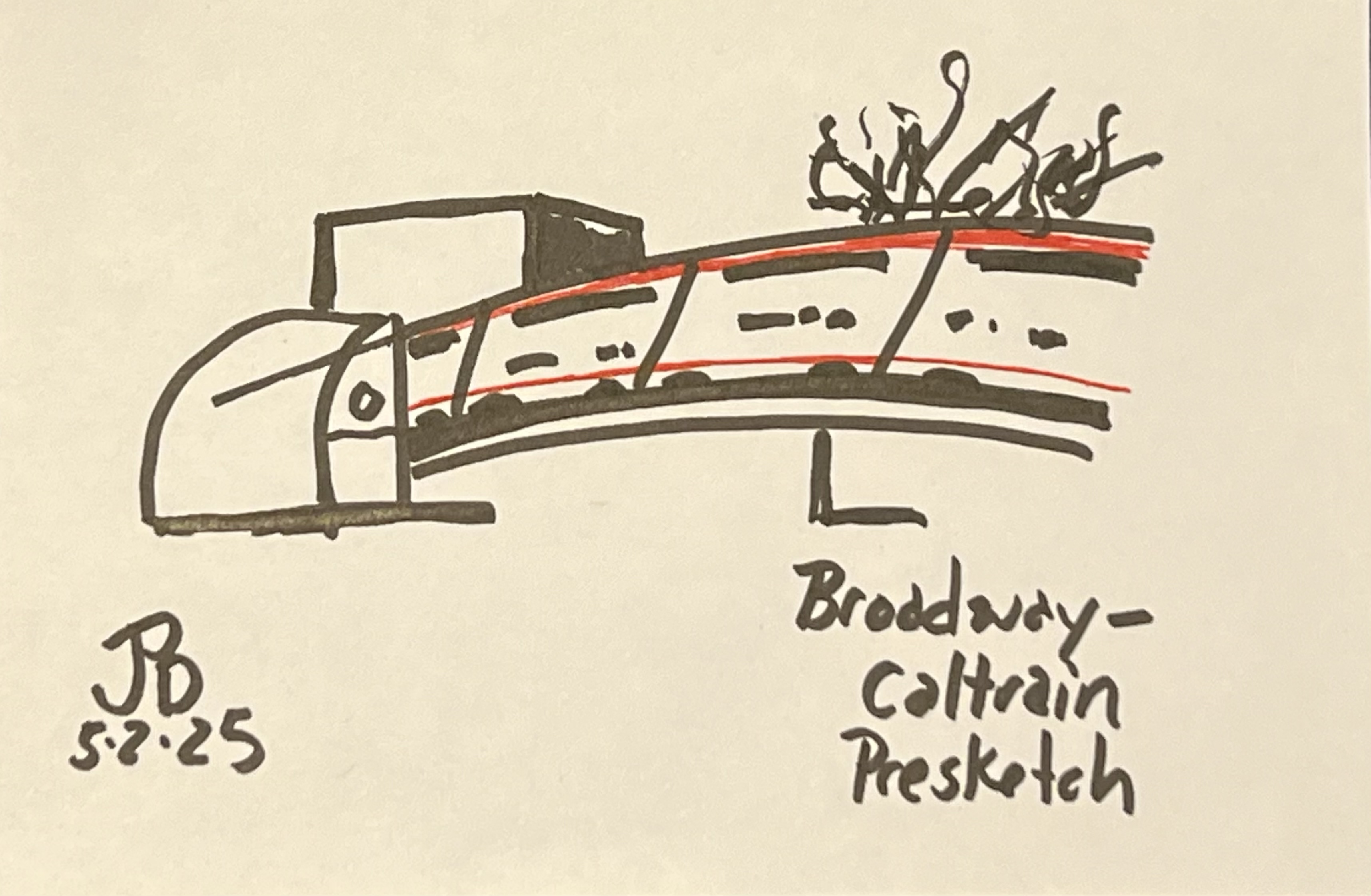 On Sunday I took the N Judah to Embarcadero Station with the intention of sketching a little San Francisco rail history. My main sketching target was the Belt Line Railroad Engine House or Roundhouse at Embarcadero and Sansome.