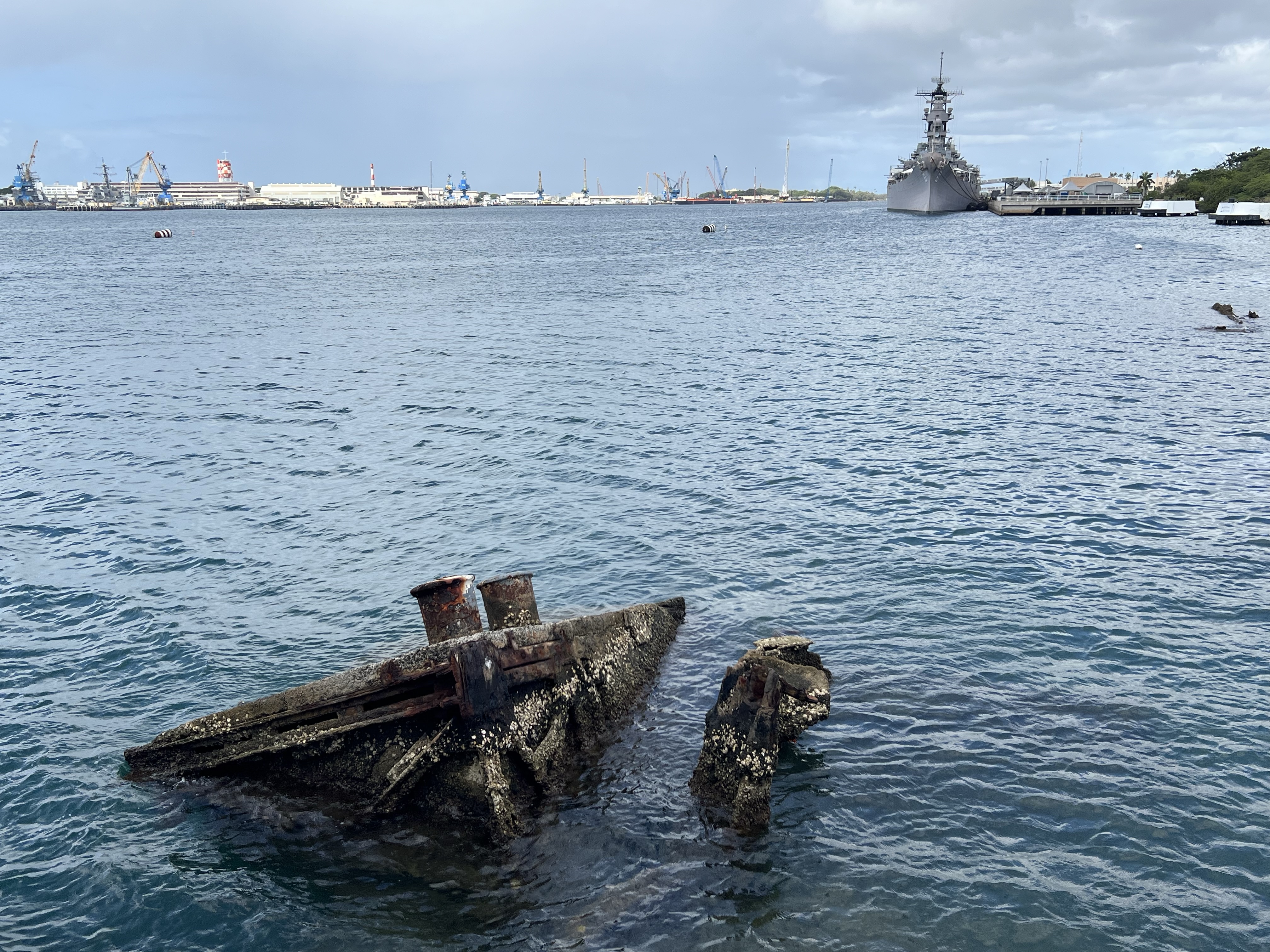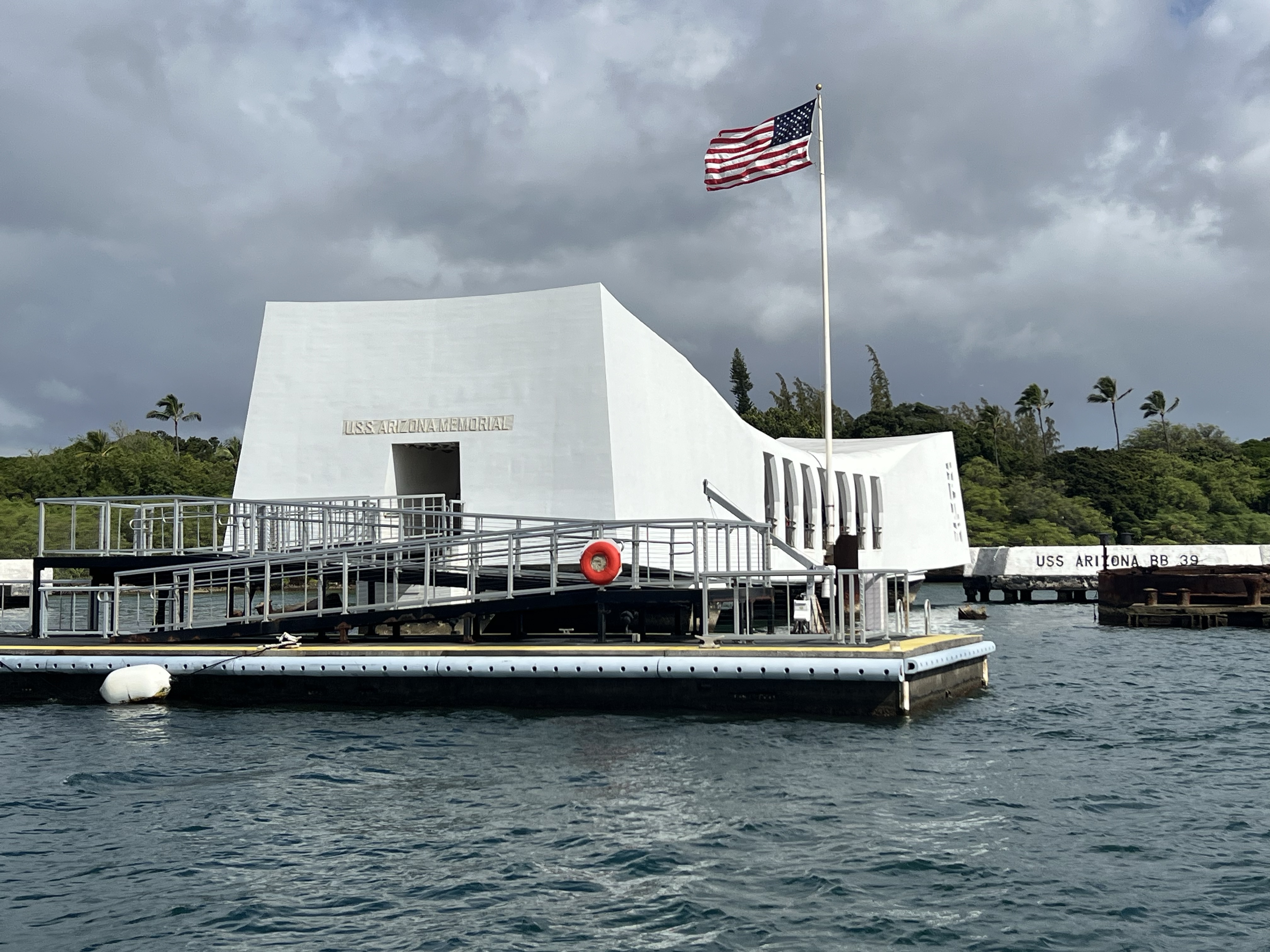 The Arizona is a nautical grave. On December 7, 1941 a Japanese bomb passed through four decks igniting an ammunition magazine causing a massive explosion. Sailors were incinerated instantly. This is the biggest loss of life on a single ship in US Navy history killing 1,177 sailors. About 900 sailors are entombed in the sunken battleship.