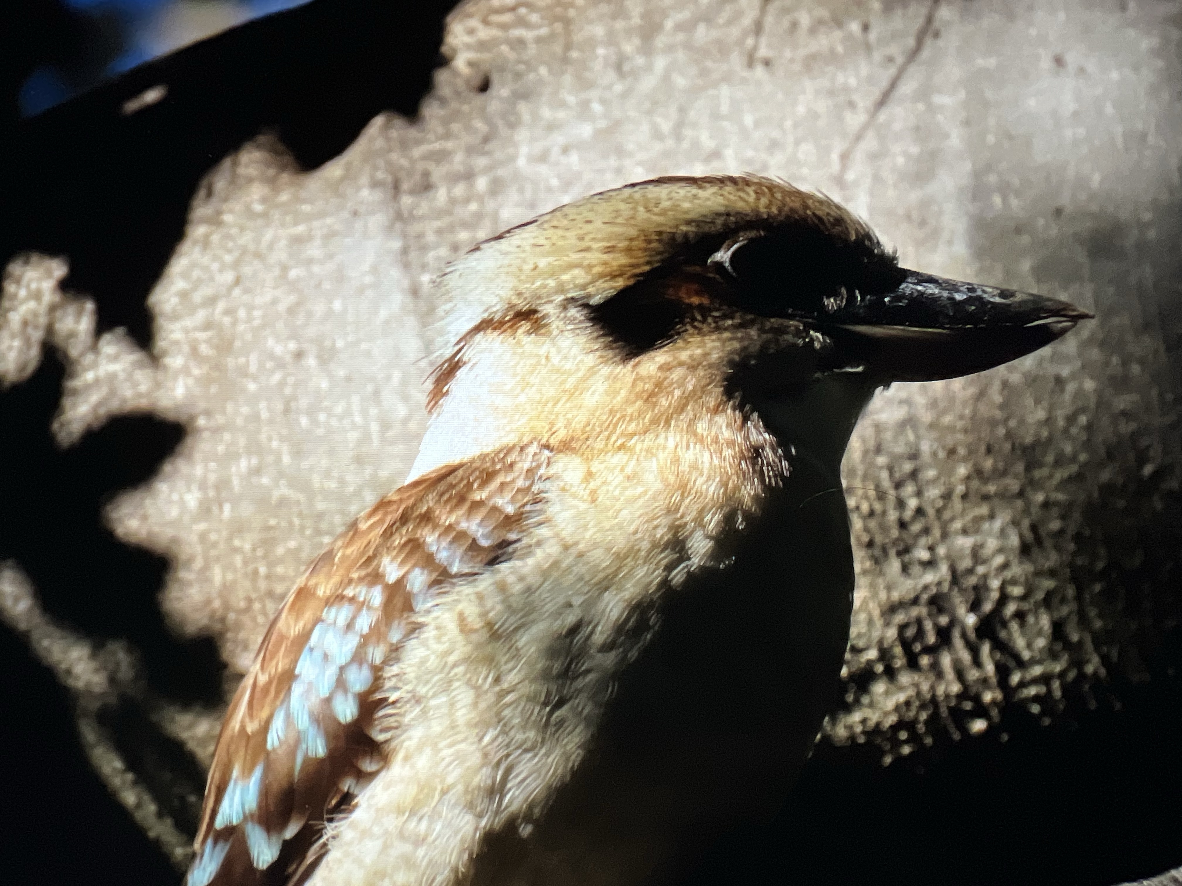 I pulled out my sketchbook and drew the roosting bats in the gum trees, the result looked like a very odd Christmas tree. My sketching was in the presence of an observant perched kookaburra.