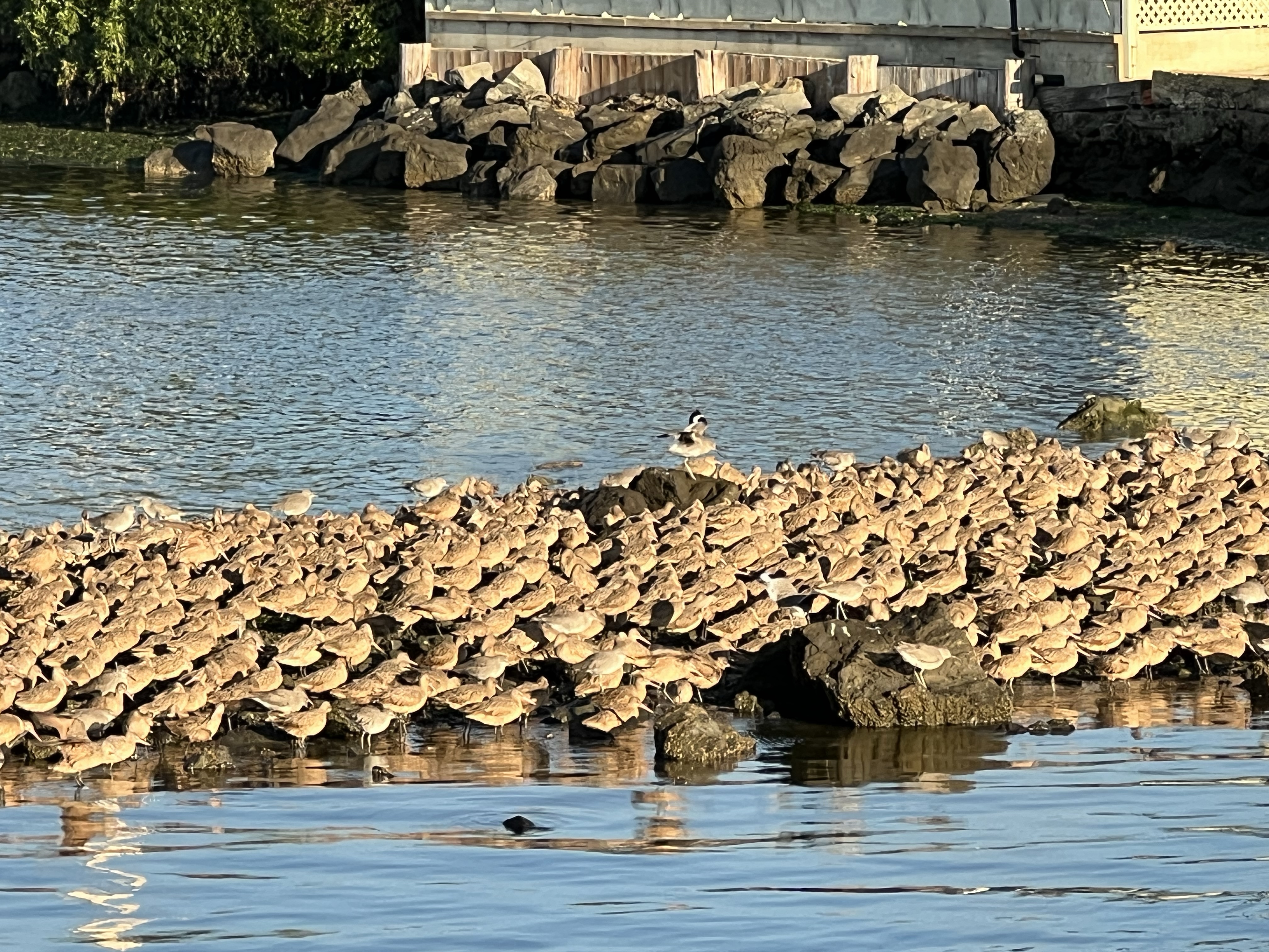 The views from the panoramic windows as outstanding and the drama of wildlife beats anything on television. A roosting flock of marbled godwits and willet were sent into the air my marauding peregrine.