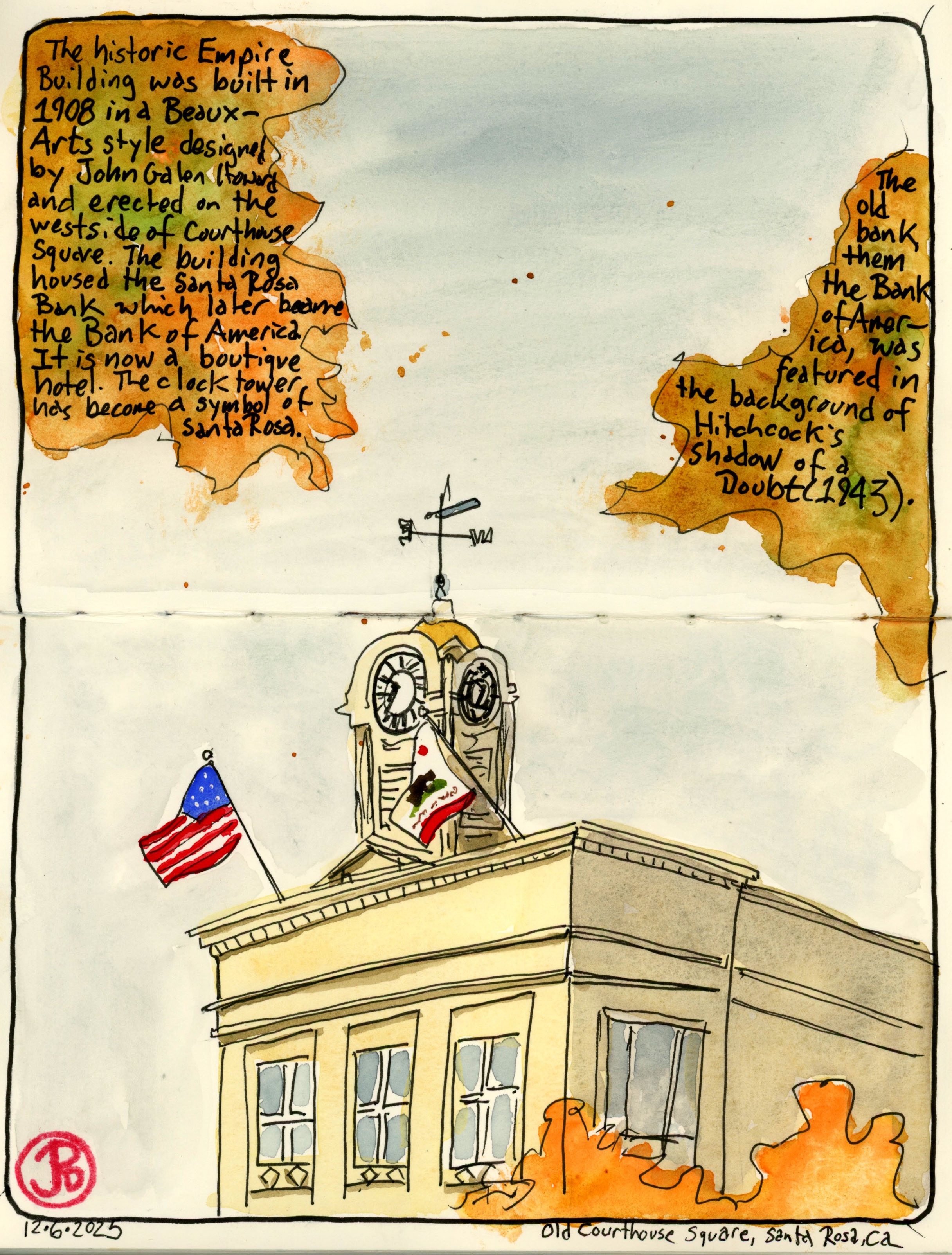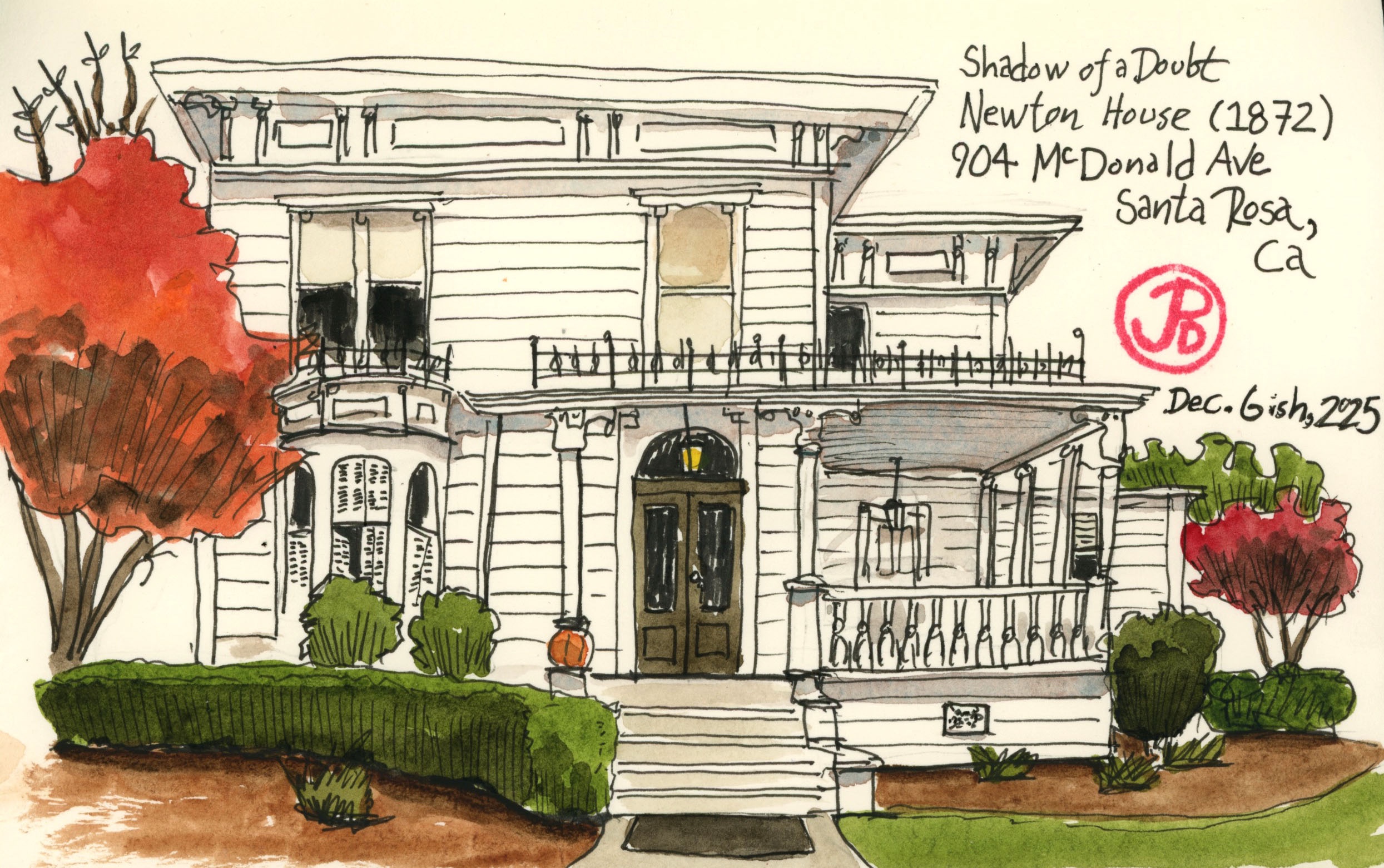 There are two other Santa Rosa Shadow of a Doubt filming locations I wanted to visit and sketch.