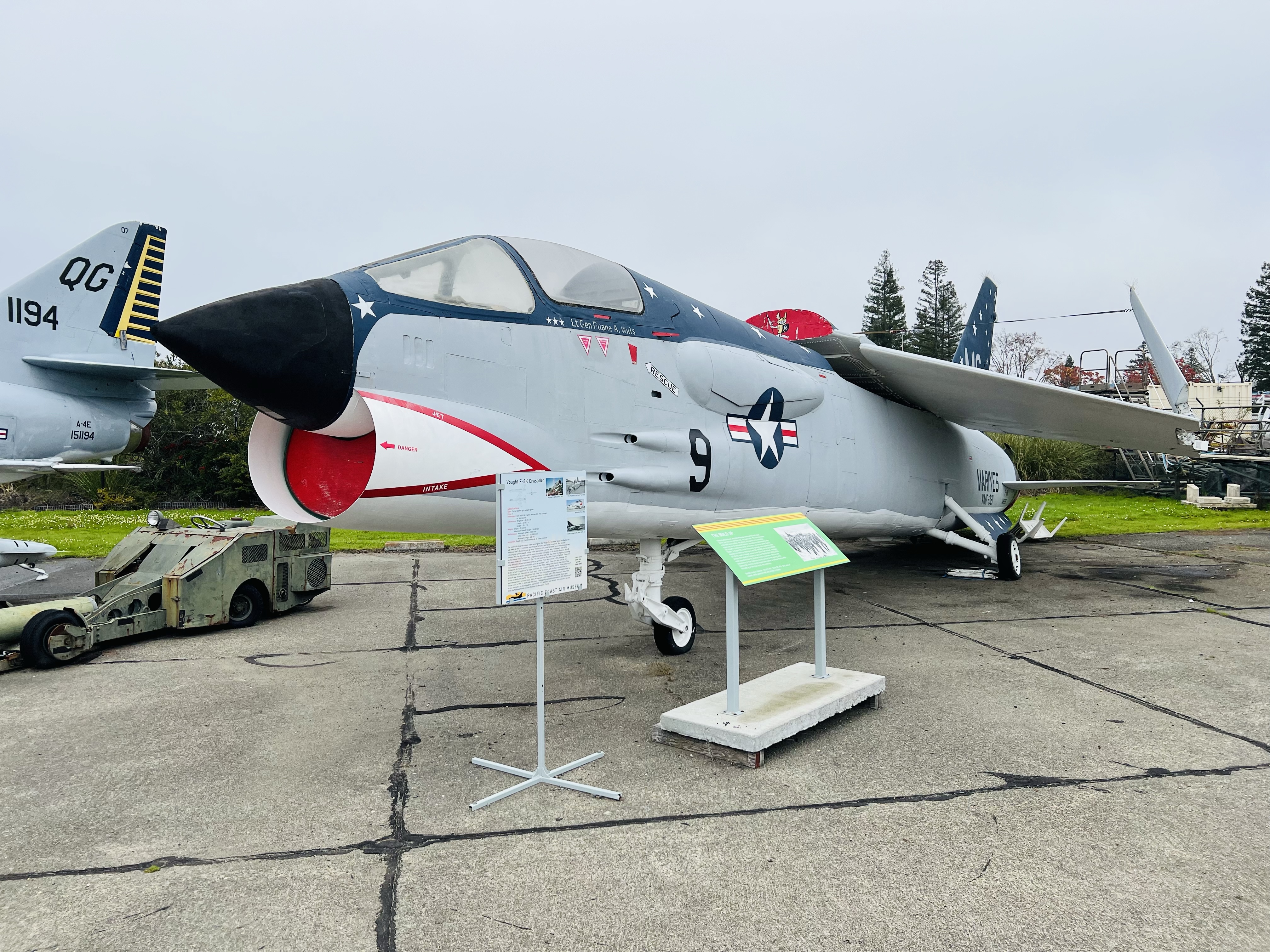 This F-8U Crusader was essentially a playground toy in a San Franciscan park, also known as “the plane in the park”. It was at Larsen Park for 20 years and I remember seeing it as my family drove north on 19th Avenue in the Sunset District. The plane was damaged from vandalism and the foggy maritime weather and was moved to Santa Rosa in 1993 and cosmetically restored.