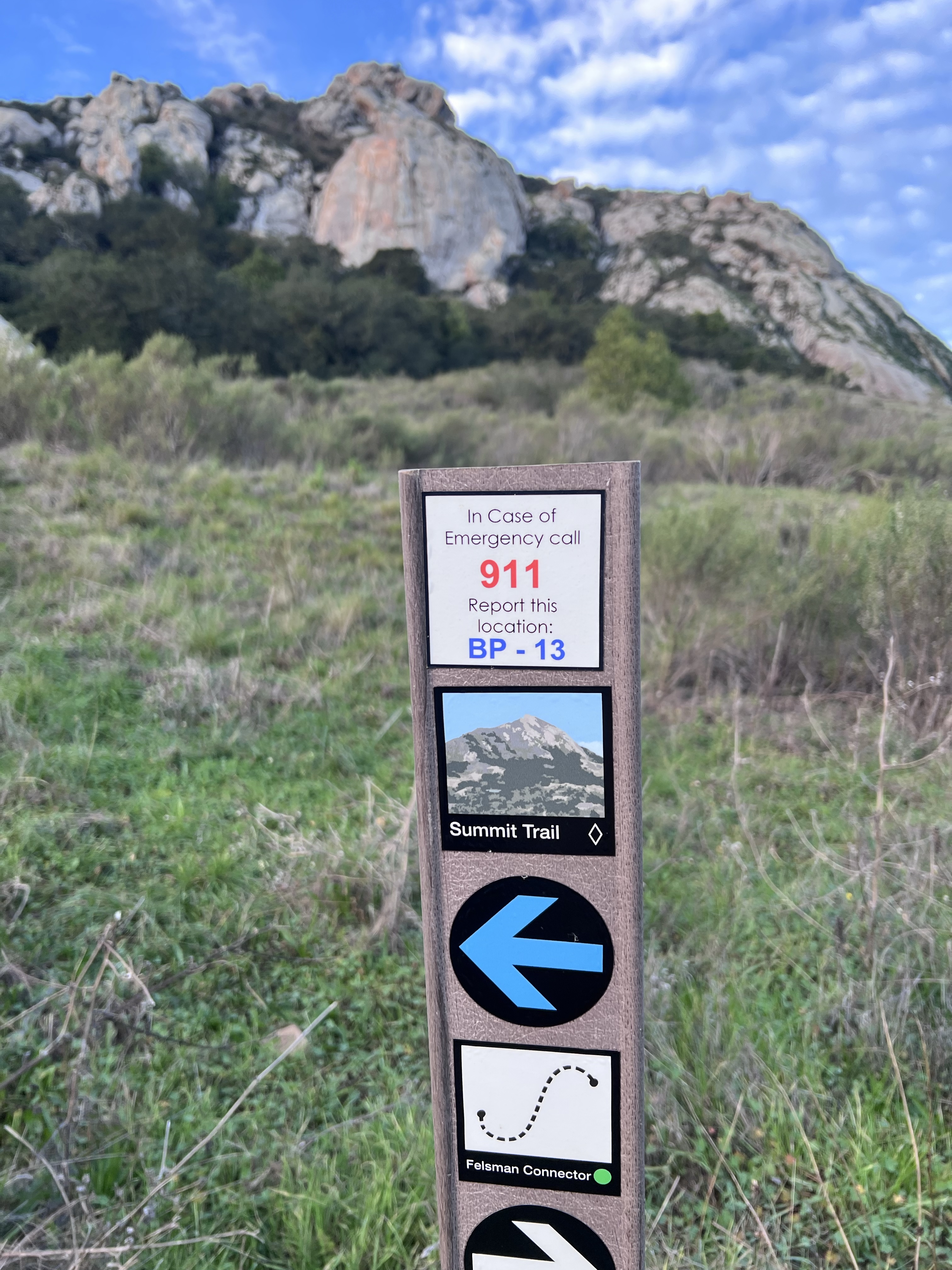 The trail marker lists the Summit Trail as a black diamond. This is not for the weak kneed and out of shape (which could describe me). I duly noted the 911 sign, giving me my location.