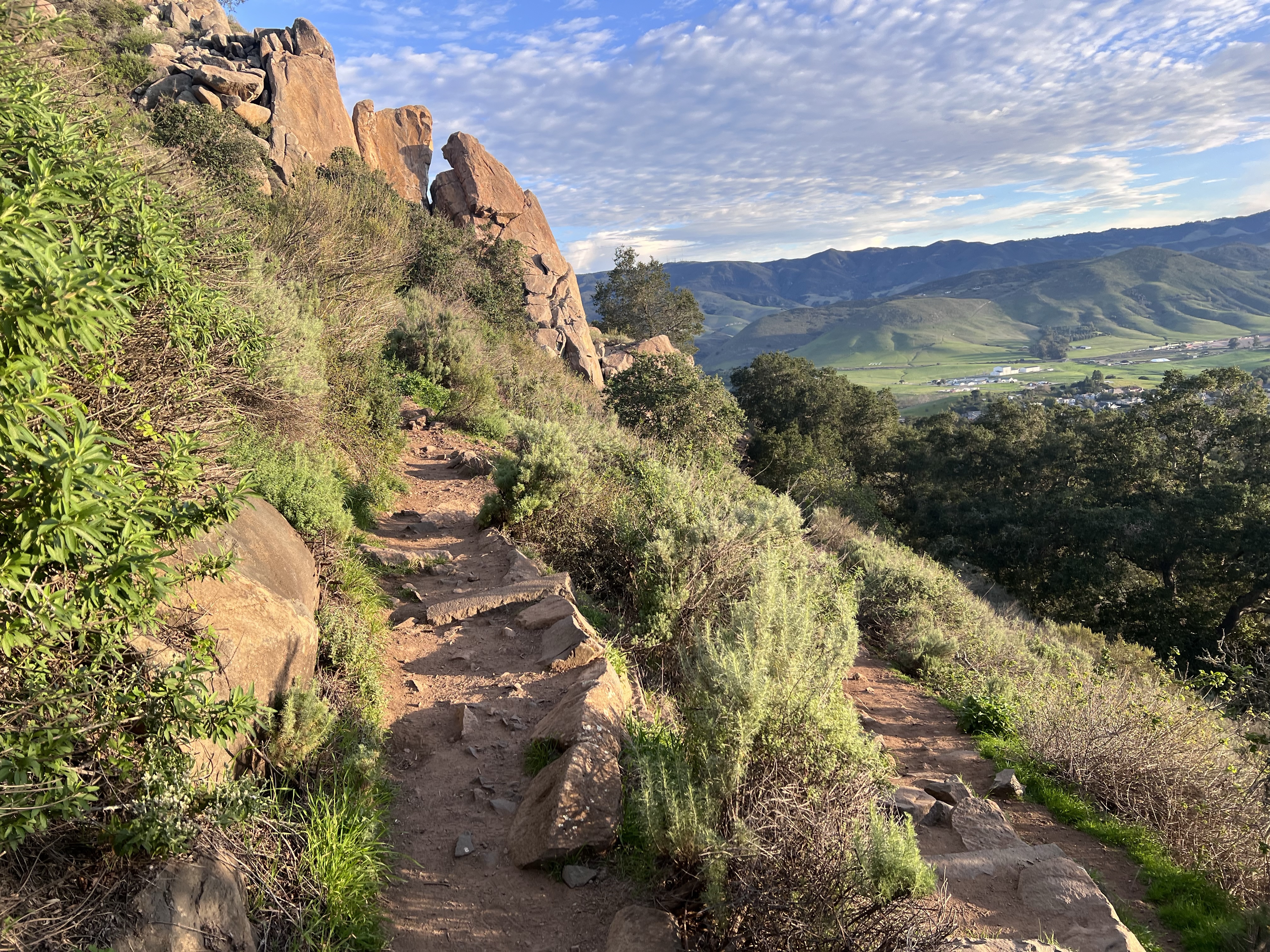 The Nine Sisters, aka the Morros, are volcanic peaks stretching from Morro Bay to San Luis Obispo. Bishop Peak, named after the shape of the summit rocks, is a much sought after destination for hikers and climbers.