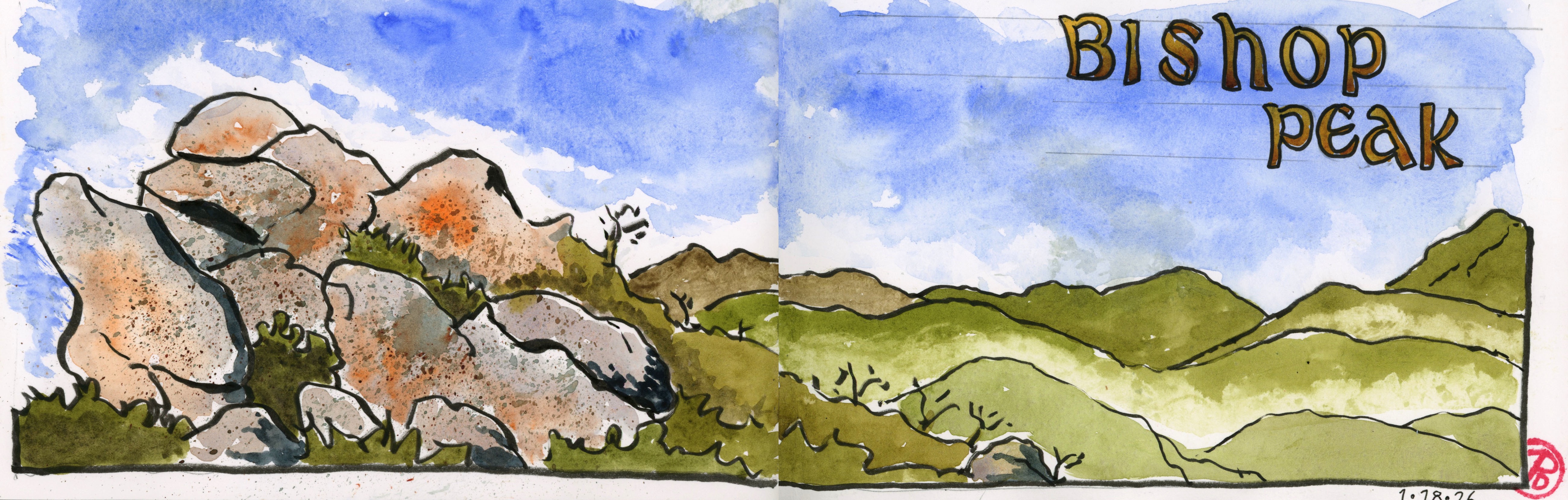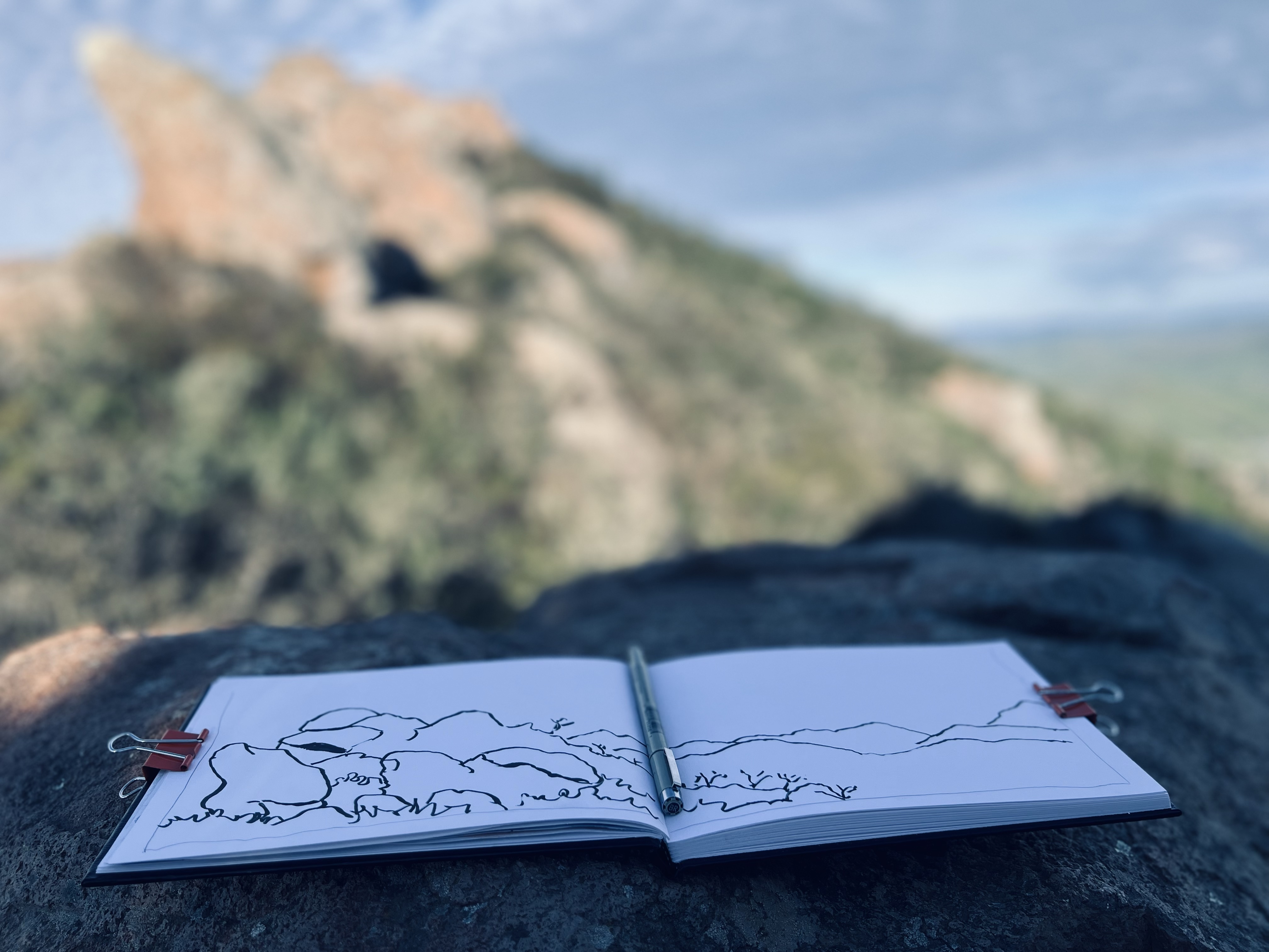 I drank some water, had some trail mix, and unpacked my panoramic sketchbook. It was sketch time.