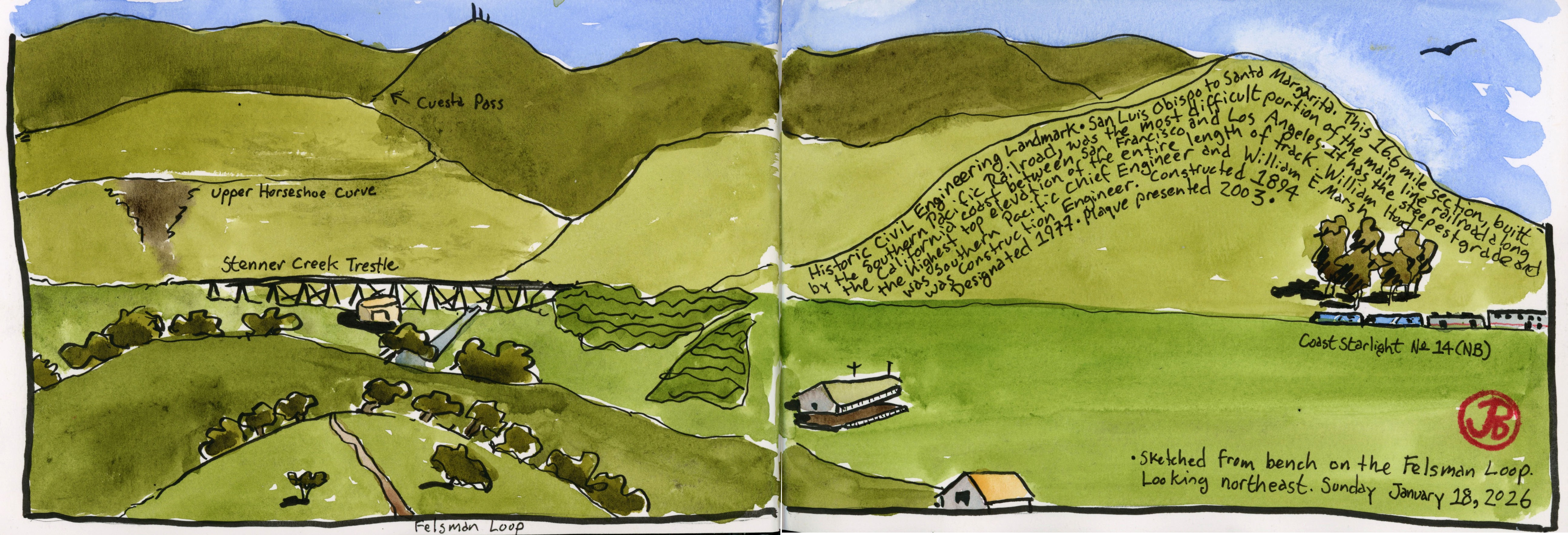 I sketched the beautiful green Californian curvaceous hills. This was a great time to be here!
