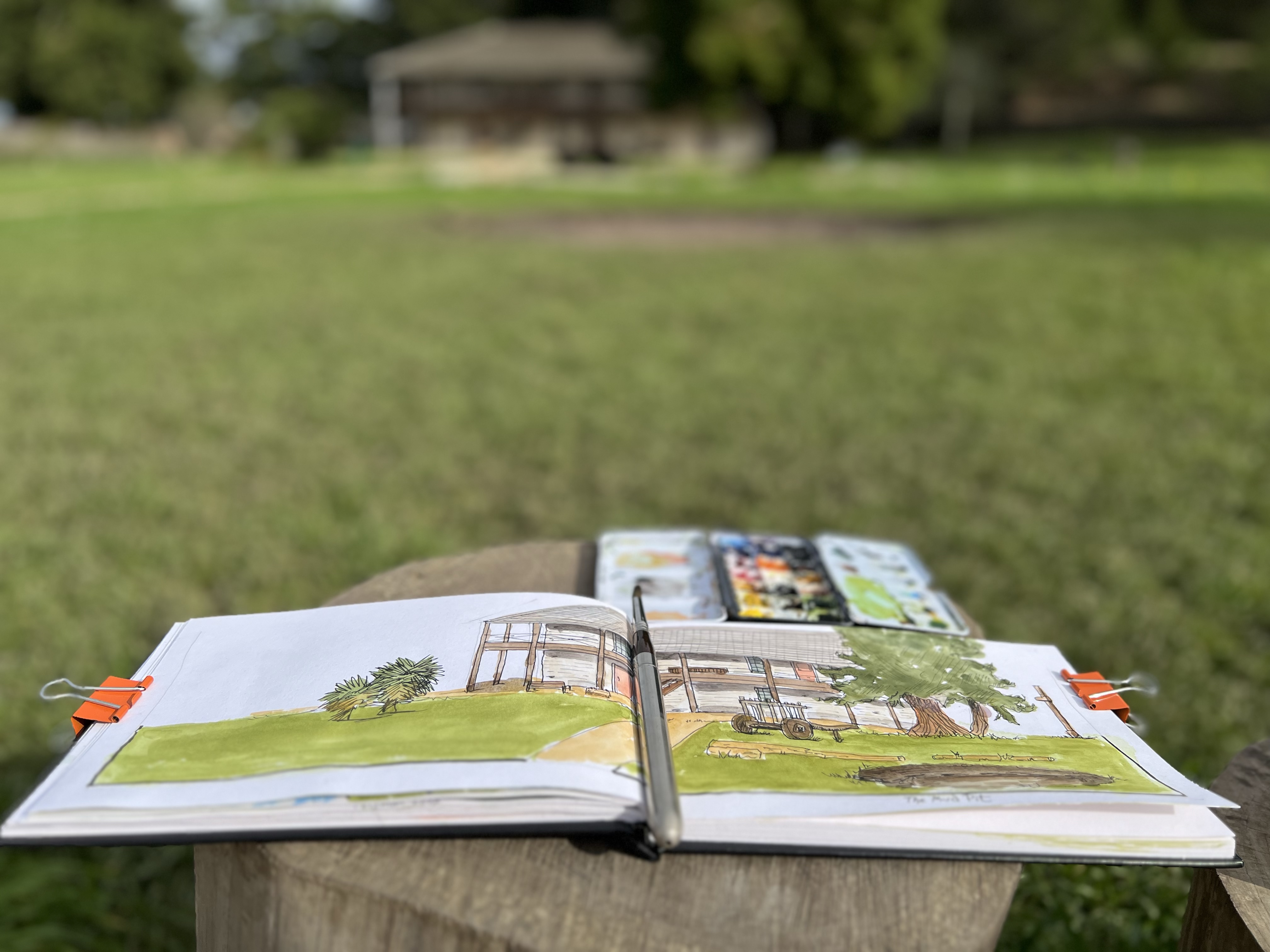 This was a true plein air sketch that would make urban sketchers proud. I used my small travel palette with half pans of watercolor and my Escoda travel brushes.