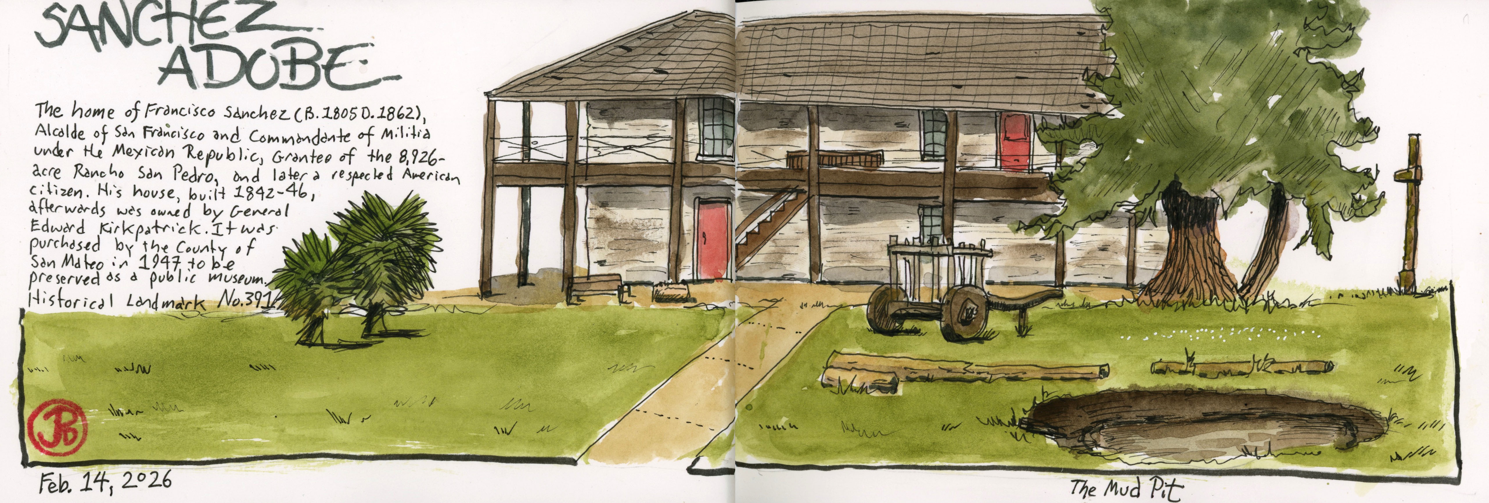 The adobe building was built by Francisco Sanchez in 1842-43 and is the oldest building in San Mateo County.