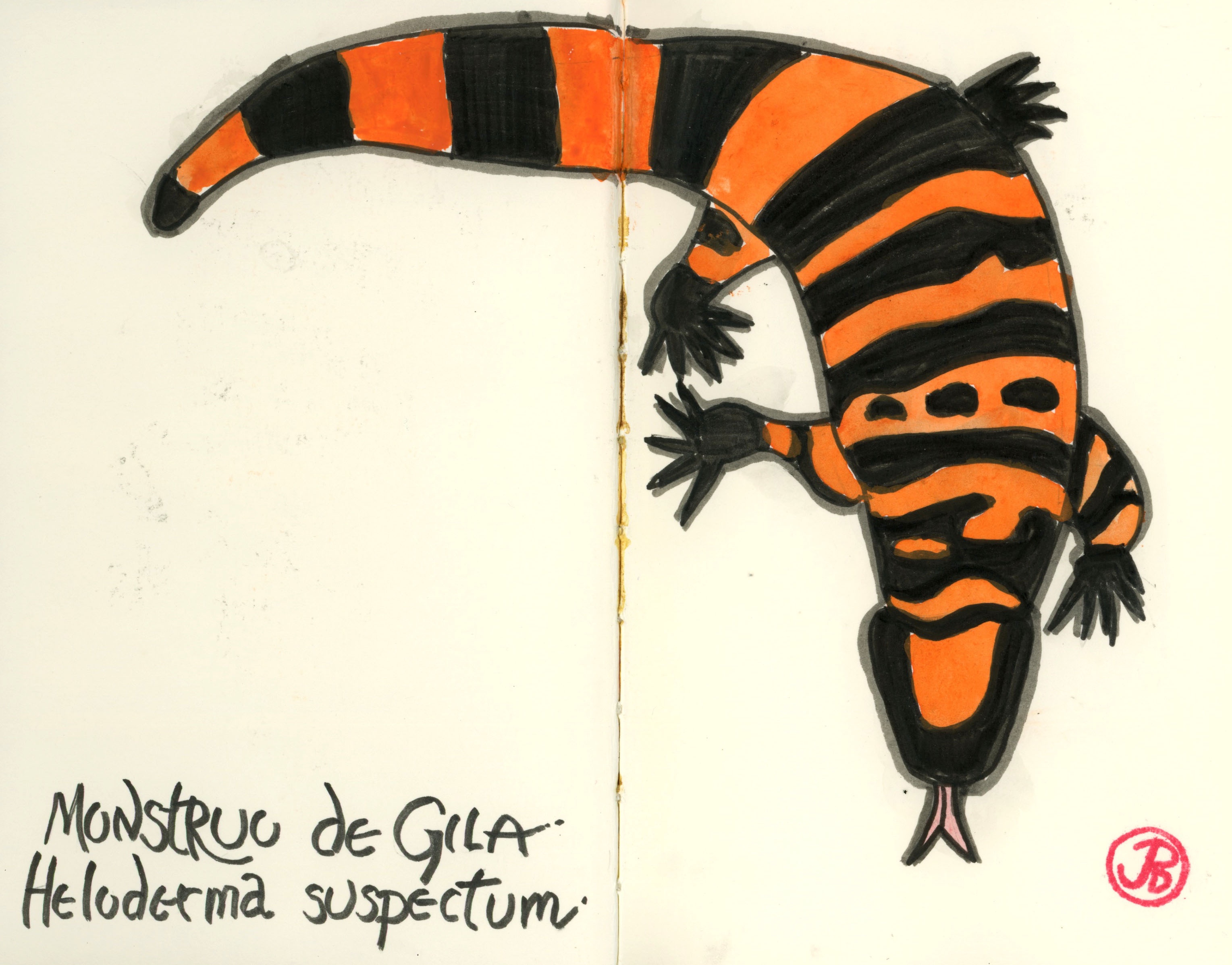 Before my journey I did a few pre-trip sketches. On my opening spread I sketched one of the largest and only venomous lizards in the United States, the Gila monster. I would love to see one in the wild!