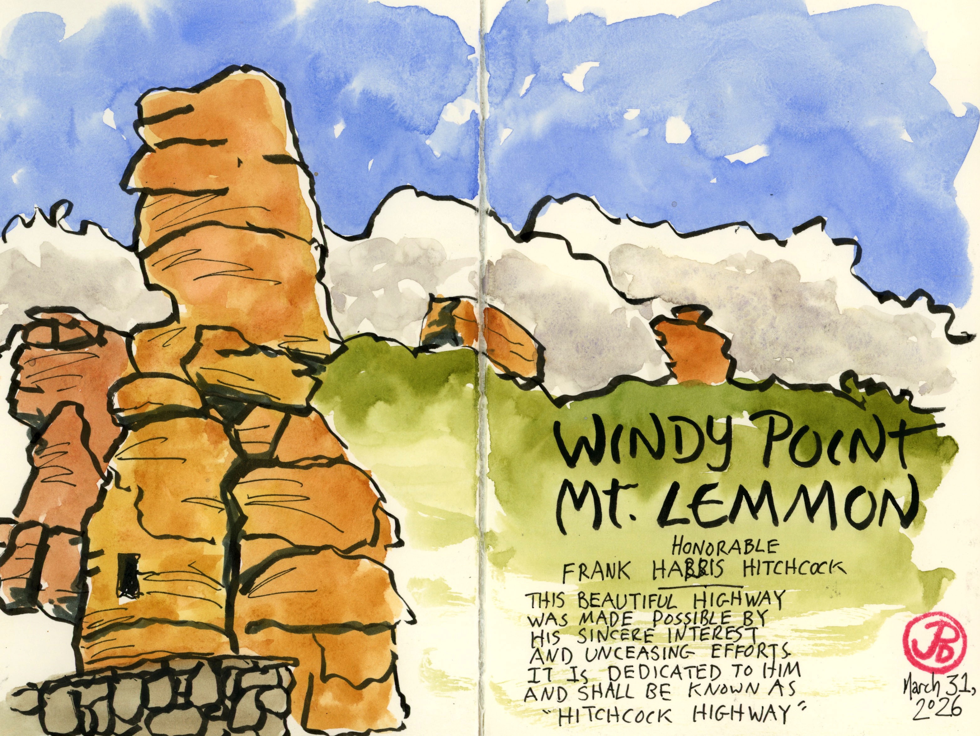 On my return down the mountain I stopped at Windy Point to sketch the otherworldly rocks and to take in the views greater Tucson. It’s amazing to think that I only had to travel about an hour from Tucson to be in a completely different world.