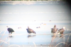 The unmistakable heft and upright posture of a bald eagle, in this a case an immature. This bird did not allow a close approach. An eagle takes five years to gain it’s iconic “outfit” that most people would recognize: white head and tail, yellow beak, and dark chocolate-brown body.