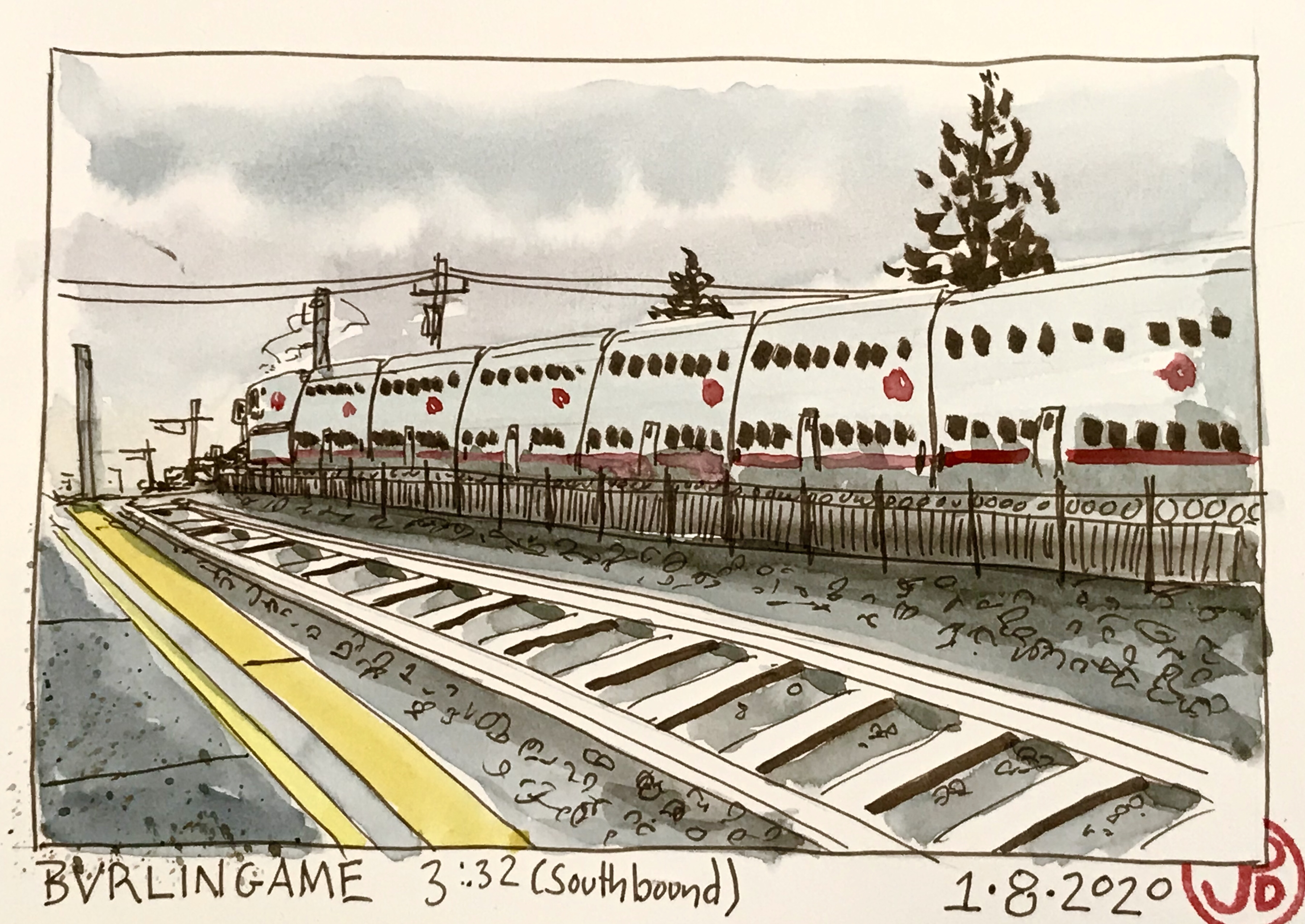 On Monday I did an afterwork sketch of the closed Atherton Station on the Caltrain route and now on Friday I headed to North Burlingame to do another after work sketch of a Caltrain station: Broadway.