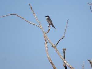 Tyrannus tyrannus, means “tyrant, despot, or king” (take your pick) is named for the kingbird’s aggressive behavior during breeding season. While defending their nesting territory, they will attack birds that are much larger than itself, including hawks, great blue herons, ravens, crows, and even squirrels. There have been reports of kingbirds landing on the back of hawks and vultures, pecking and pulling out feathers. This is the King of Tyrants with a major Napoleon Complex.