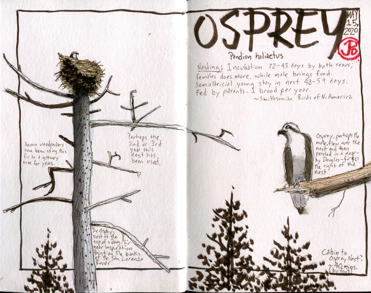 I returned to the railroad and hiked downstream towards Coon Gulch. I paused at the osprey nest where both adults were perched near the nest, indicating that there might be chicks hidden in the deep nest.