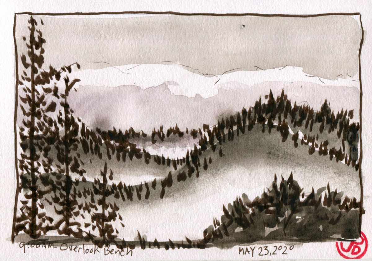 When I returned to the main beach a young man was wiping graffitti off a sign post that no longer contained a sign. I’m sure the sign said, “Don’t Litter” or “Respect The Trees, Dippers, and Rocks!” or “Save the Painting For Sketchbooks and Canvas!” Turns out he was an interpretive ranger from Henry Cowell State Park who comes to Garden of Eden, before his shift, to clean up the beach. I asked about beach clean-ups and he told me that when litter is removed, there is more to replace it on the following days. Shameful!!