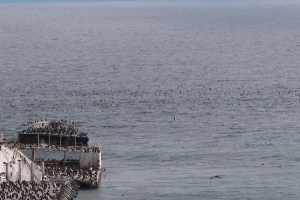 From the upper parking lot I looked out to the segmented and ruins of the “Concrete Ship”, the S. S. Palo Alto. The ship had been torn into three pieces by a series of storms in the past but now it looked like the ship was further off shore than normal. This was really an optical illusion because the wharf that reached the ship’s stern was all but destroyed in the recent storms, leaving the Palo Alto looking like a rusting isolated island chain crowned in cormorants, gulls, and pelicans.