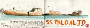 I sketched the ship with my new TWSBI Diamond 580 fountain pen. I had sketched this ship before in it’s various stages of decompose. I remember a time when I was a child when you could actually walk out on the pier and to the ship. Those days are long gone.