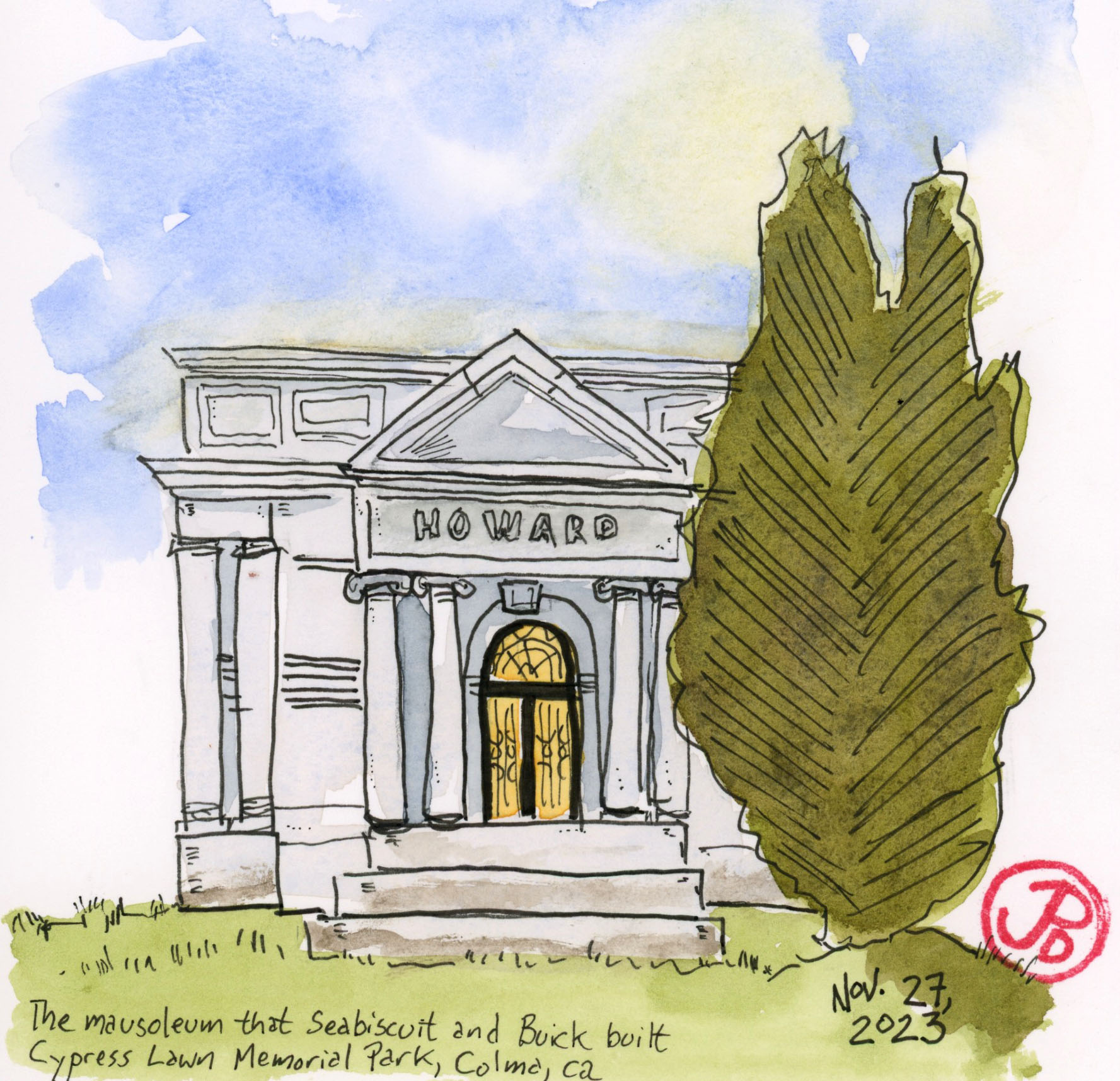 I returned to Atherton to sketch the lonely railroad shelter where passengers no longer detrain or board.