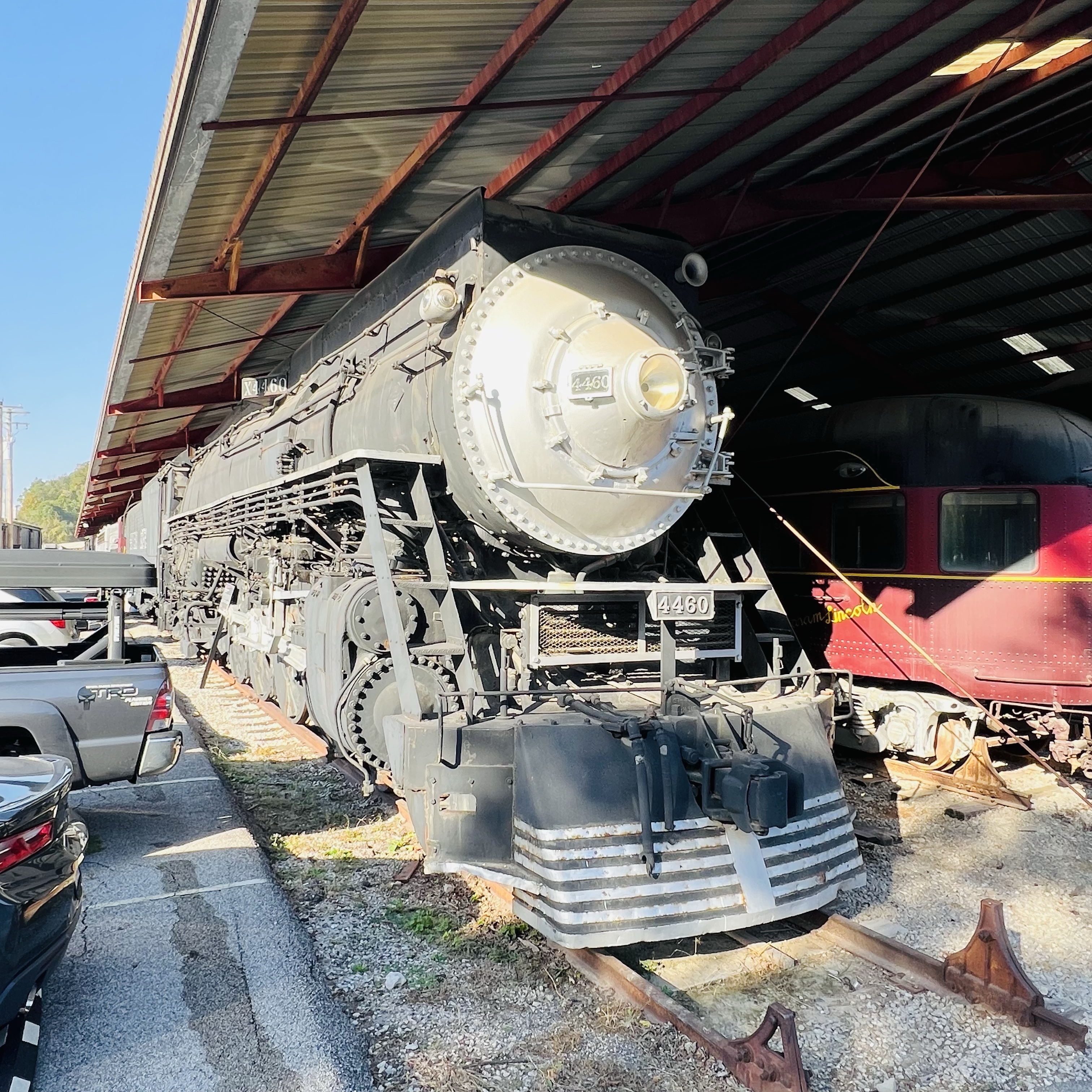 Another name for 4460 is the “Forgotten Daylight” because it gets far less attention than her famous relative, GS-4 No. 4449. It’s placement in the corner of the engine shed, hemmed in by parked cars at the museum, gives a new meaning to the “Forgotten Daylight”.