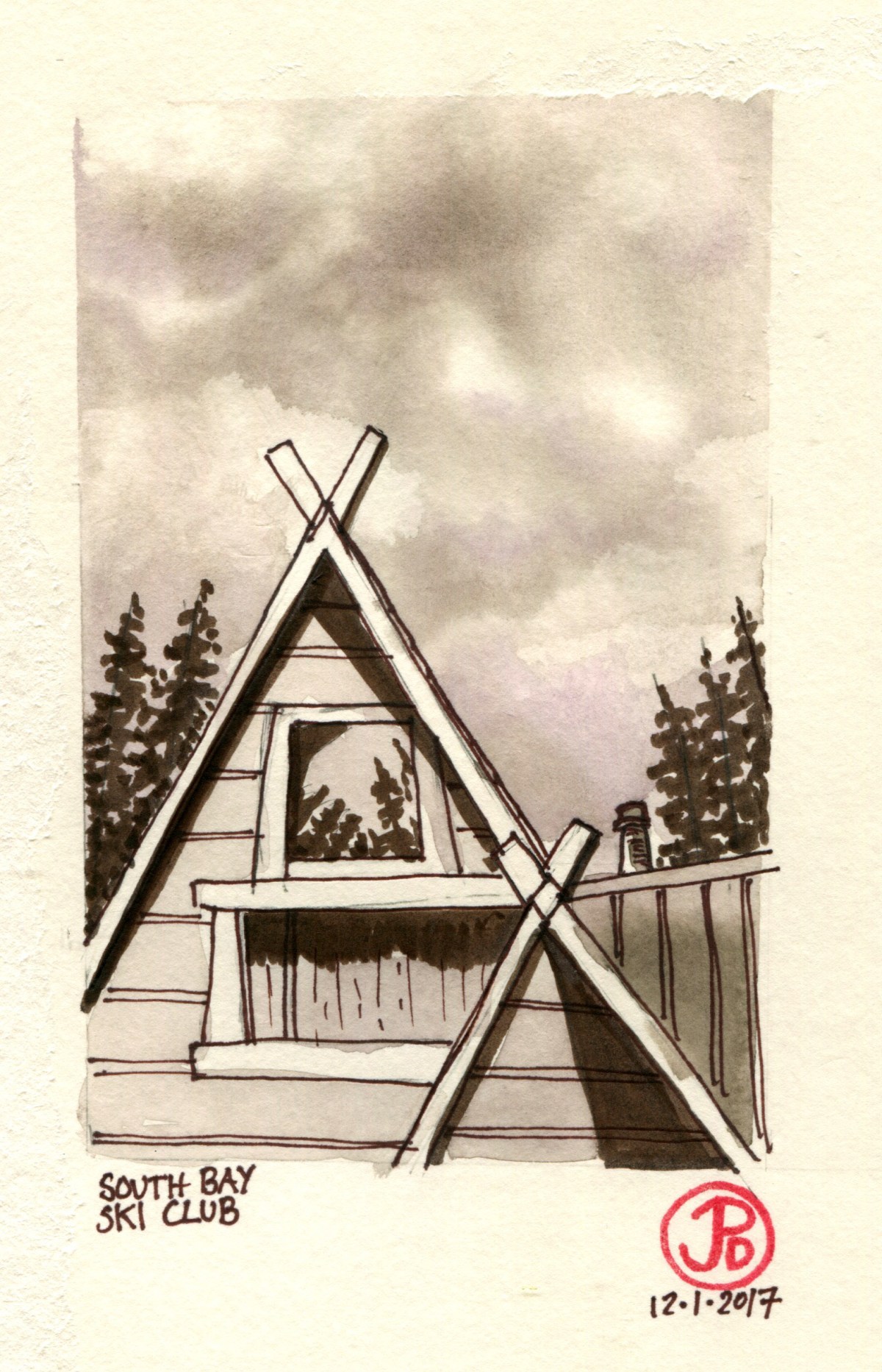On a recent jaunt to Donner Pass I pulled into the the Gondola parking lot and looked out at the resort with Mt. Lincoln and Mt. Disney in front of me. I sketched the view in my panoramic sketchbook with my brush pen. In early June, the resort was closed for the season after the record snows of the winter of 2023.